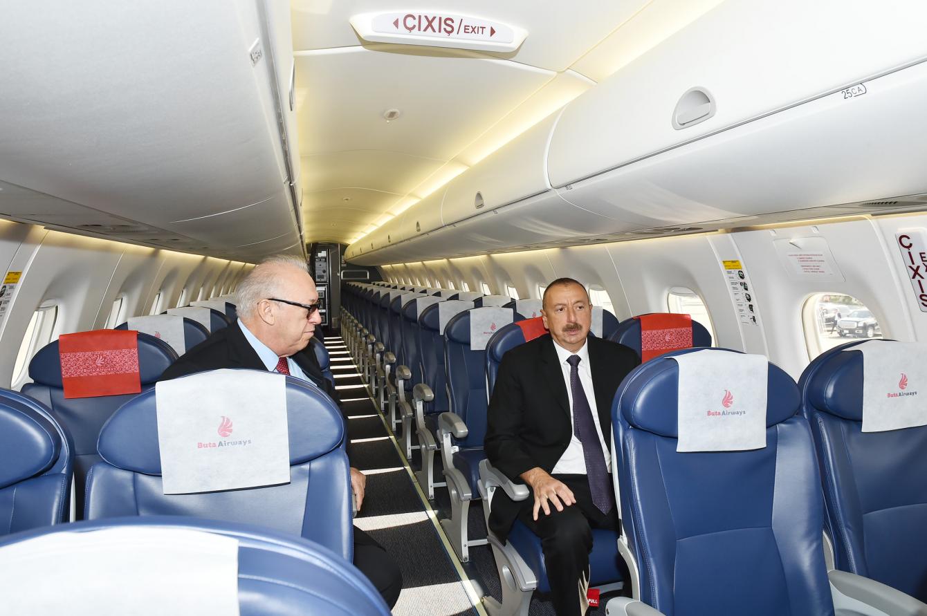Azerbaijani President Reviews First Embraer 190 Plane Of Buta Airways In Baku