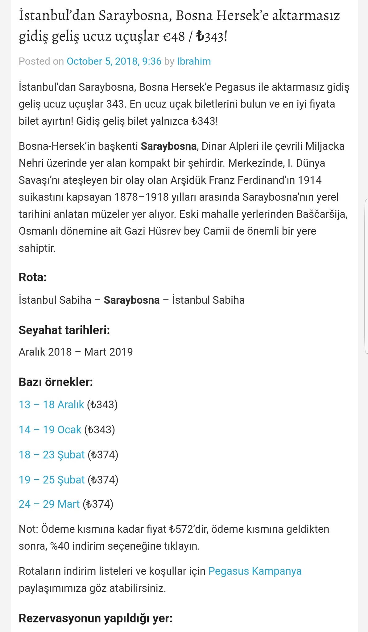 Pegasus Ankara Cikisli Tek Yon Saraybosna 137 Tl Tatiletsen