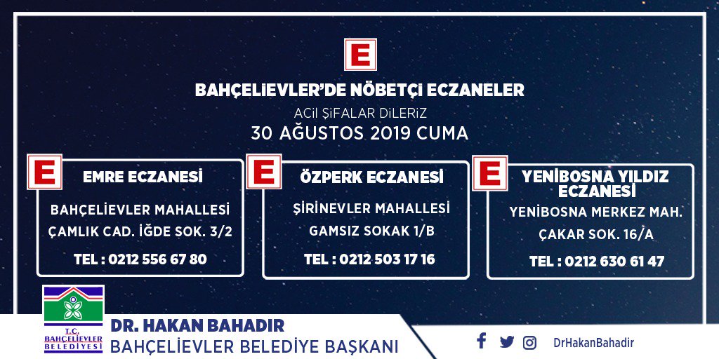 Bagcilar Belediyesi בטוויטר Bu Gece Bagcilar Da Gorevli Nobetci Eczaneleri Sizler Icin Listeledik